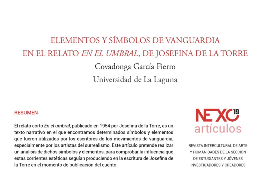 «Elementos y símbolos de vanguardia en el relato «En el umbral», de Josefina de la Torre», por Covadonga García Fierro.